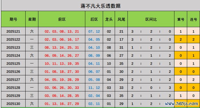 大乐透上期数据分析:前区01,13,16,27,29,后区02,11,前区龙头01,凤尾29,区间比1:2:2,莫得开出重号。莫得开出连号。